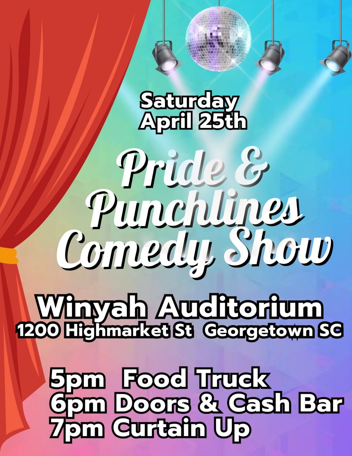 The evening features a lineup of local and regional comedians, leading up to Lace’s headline set, all in support of PFLAG Pawleys Island. Proceeds from this event directly support our expanding family and youth (14–17) programs, along with education, outreach, and community-building efforts across Georgetown County.